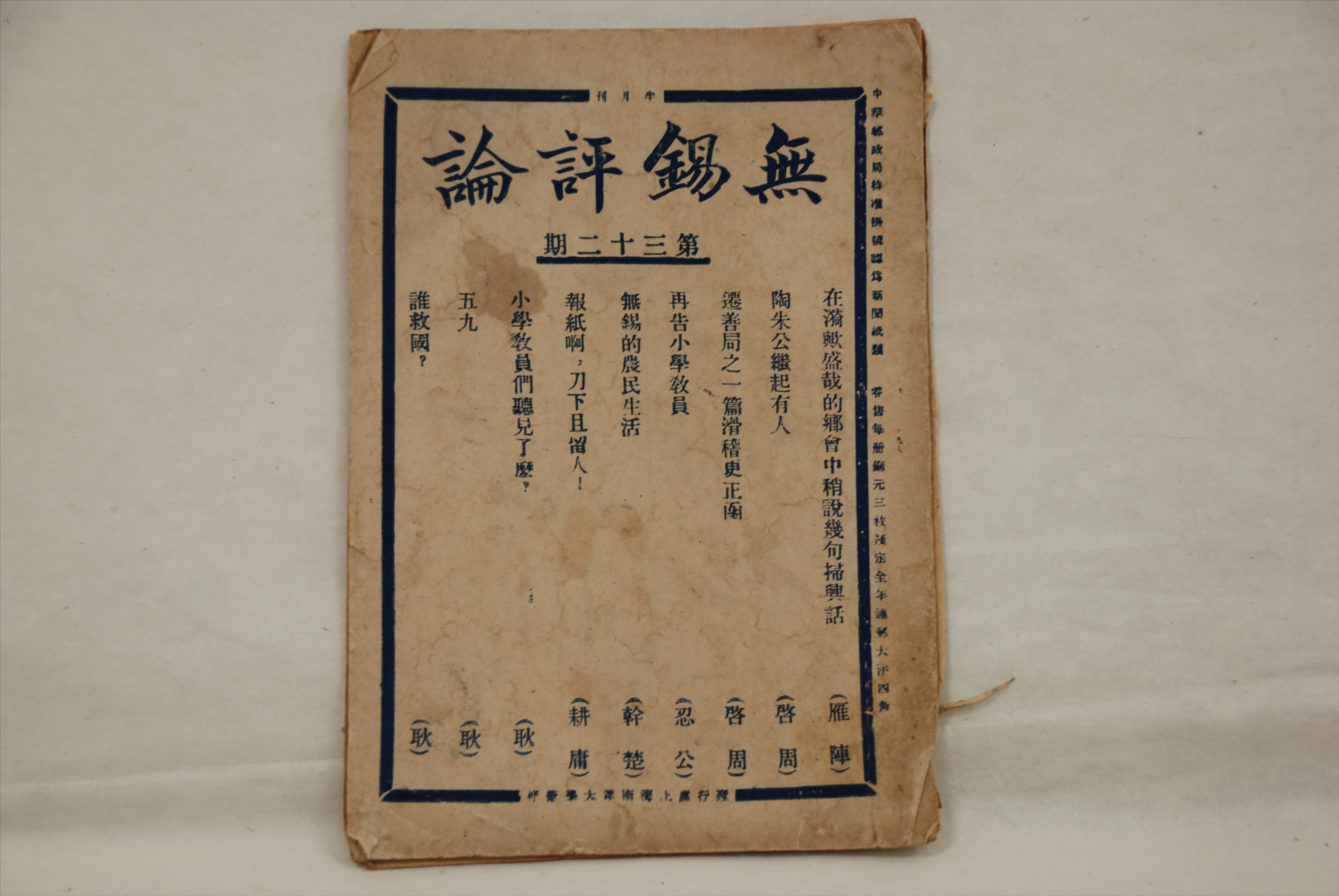 1926年4月15日《无锡评论》第三十二期
