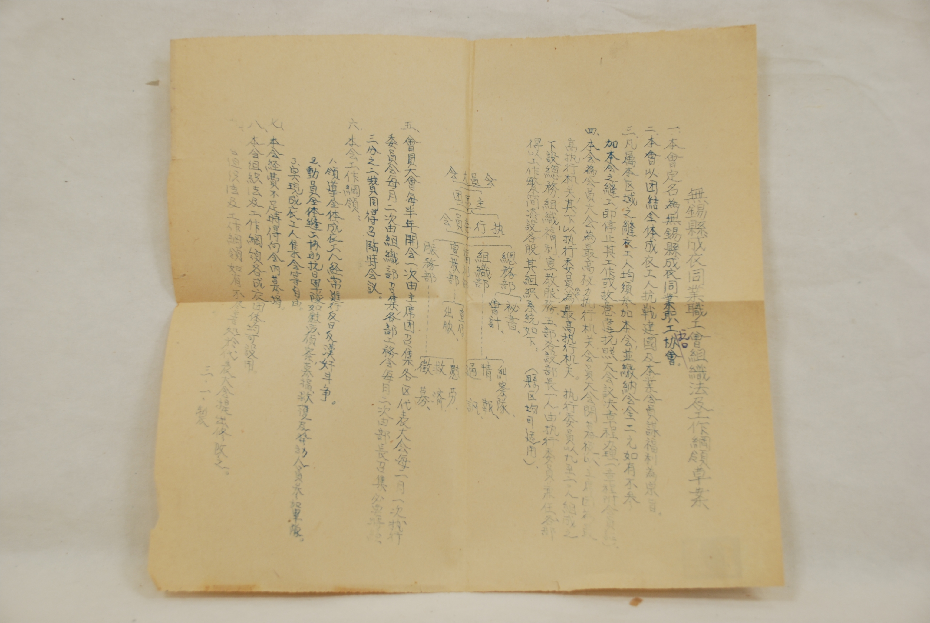 民国无锡县成衣同业职工会组织法及工作纲领草案
