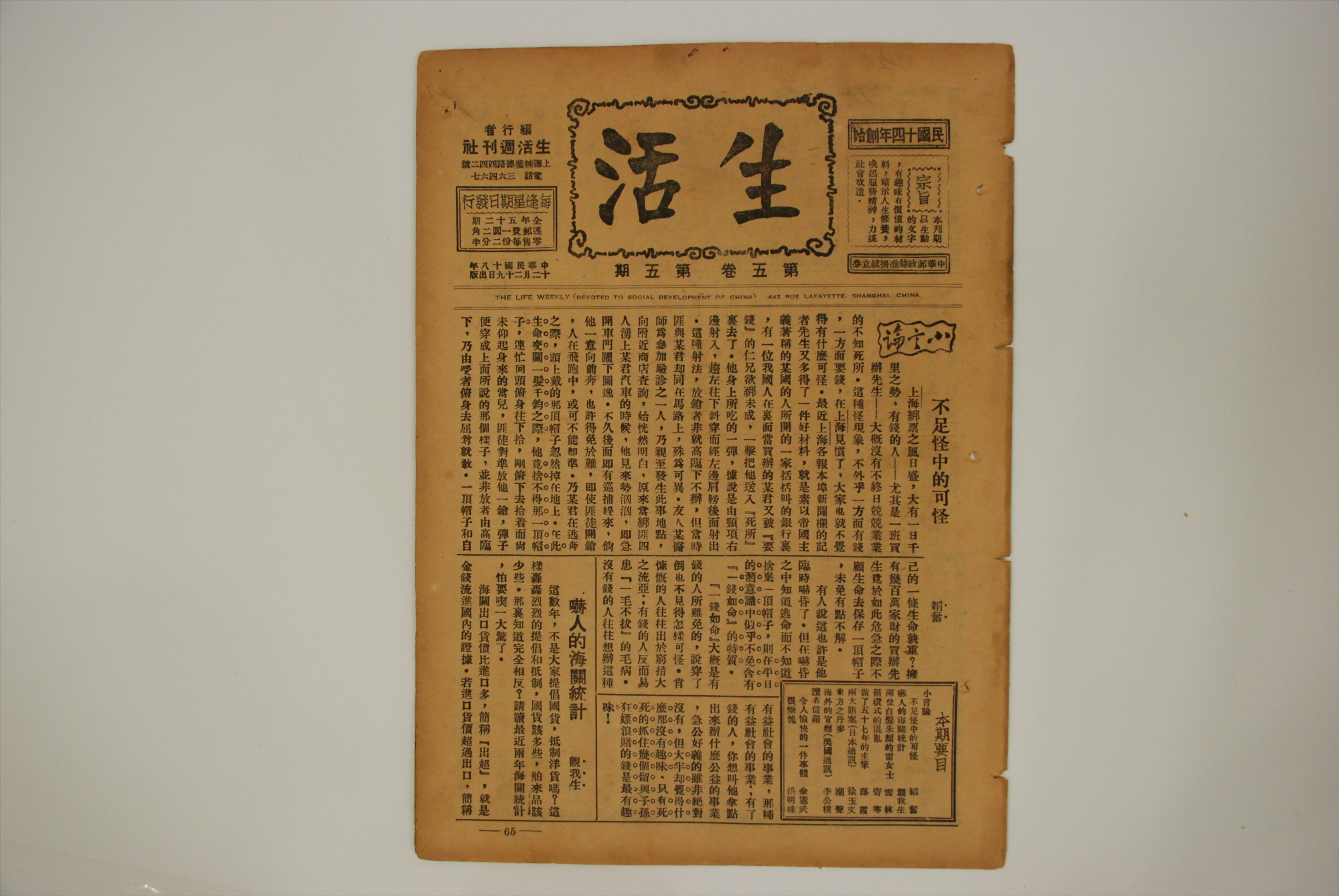 1929年12月22日《生活》周刊第五卷第四期